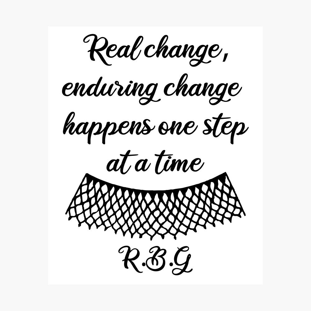 Rbg Quotes Real Change Enduring Change Happens One Step At A Time Quotes On Activism In Honor Of Rbg Poster For Sale By Yeknow Redbubble