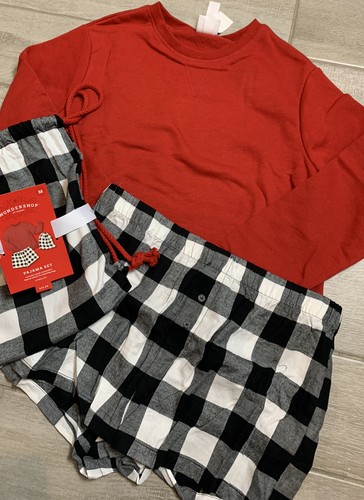 New Medium Wondershop Womens Pajama Set Red Sweatshirt Plaid Flannel Shorts Ebay